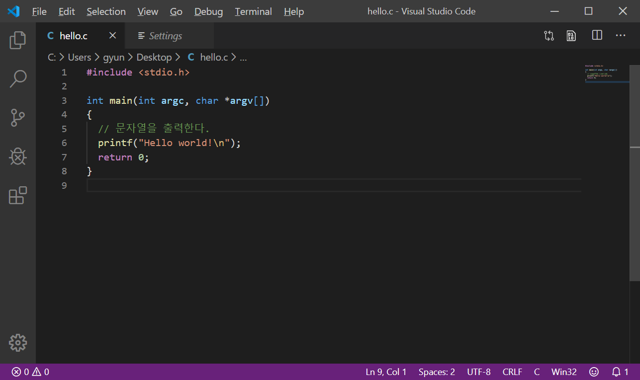 Visual studio code(VScode) 에서 "File" → "Preferences" → "Settings" 메뉴를 선택하여 설정 창을 연다.